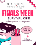We all need a little help studying!! Send your favorite student a super cute helpful study package! Package includes sweet and savory treats, caffeine, gum, study supplies & a coffee shop gift card!! As always, packages are all wrapped up super cute with a little encouragement & love from home! Deliveries will start Monday, December 1st through the week of exams! Exams are December 8th-12th.